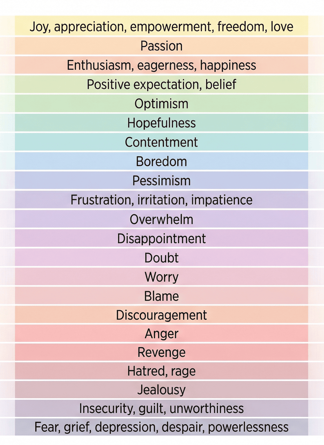 The Emotional Guidance Scale is a chart of emotions used in Abraham Hicks teachings.